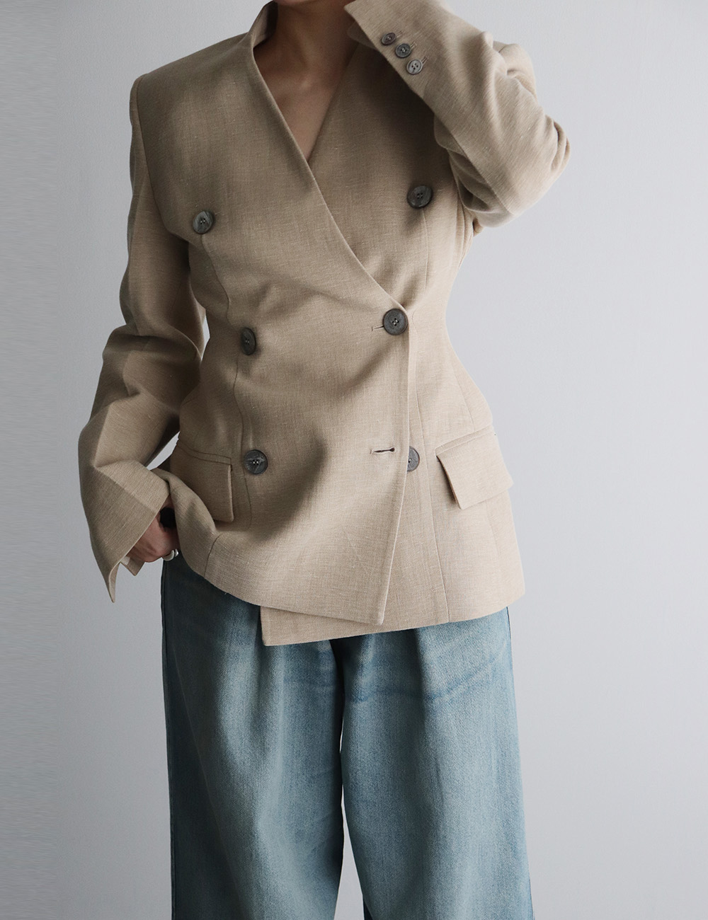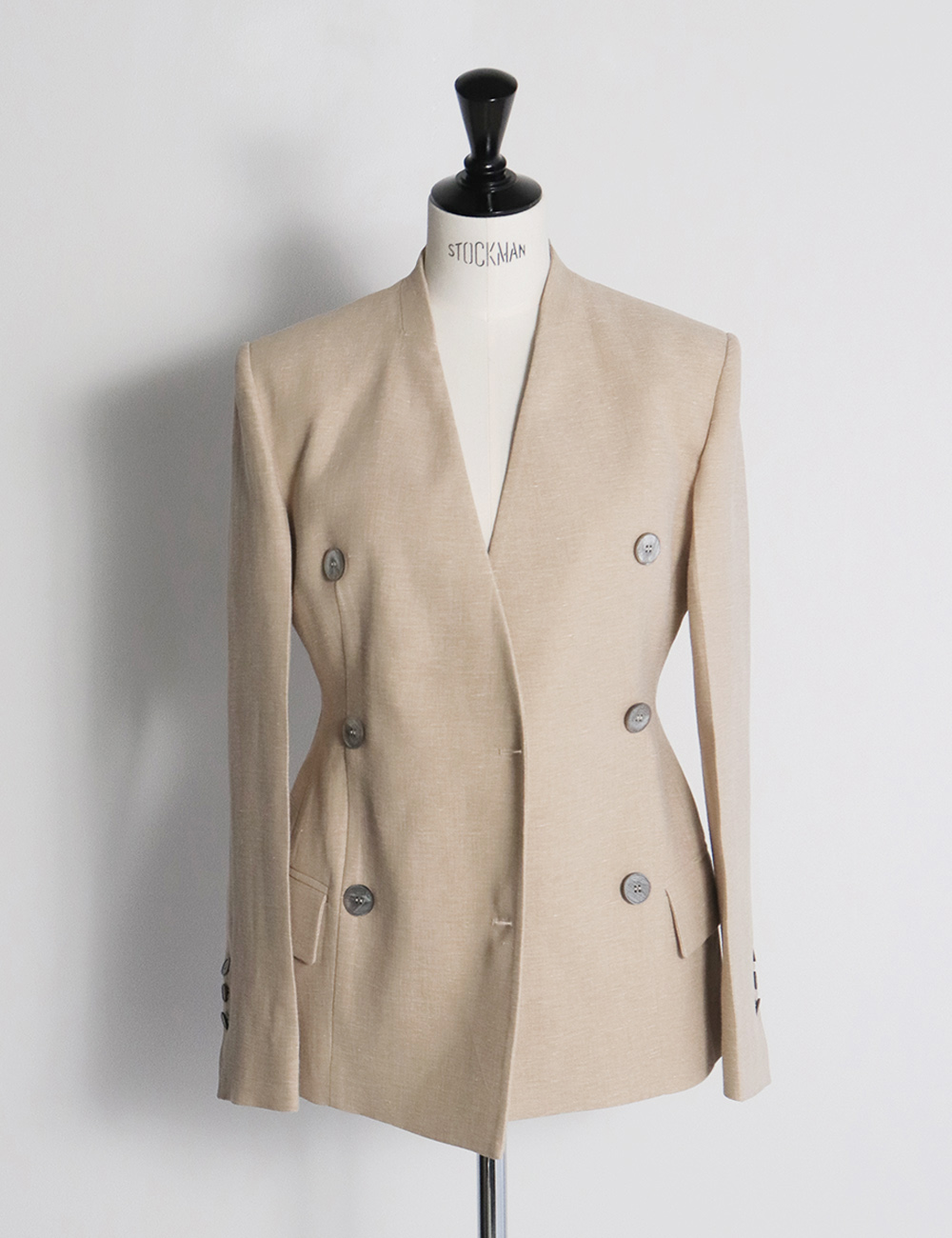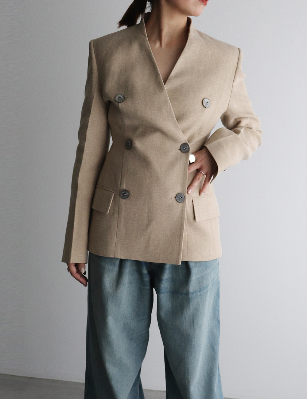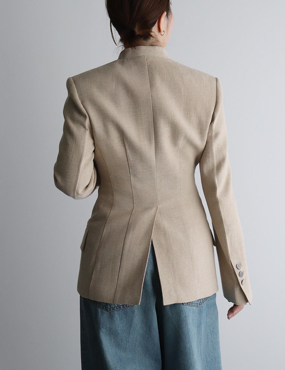 CLES Linen Cotton Collarless Double Jacket