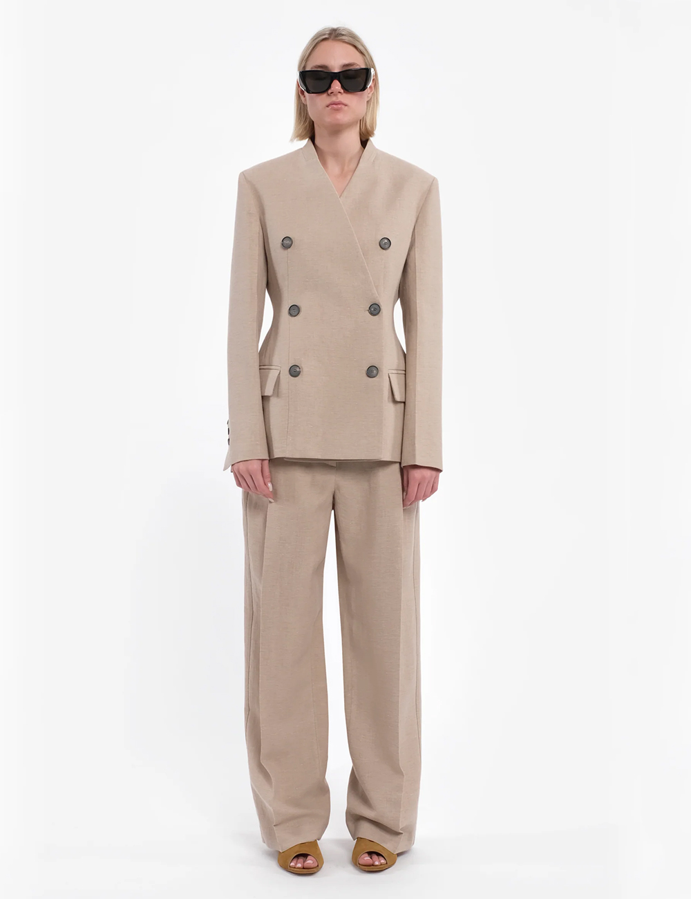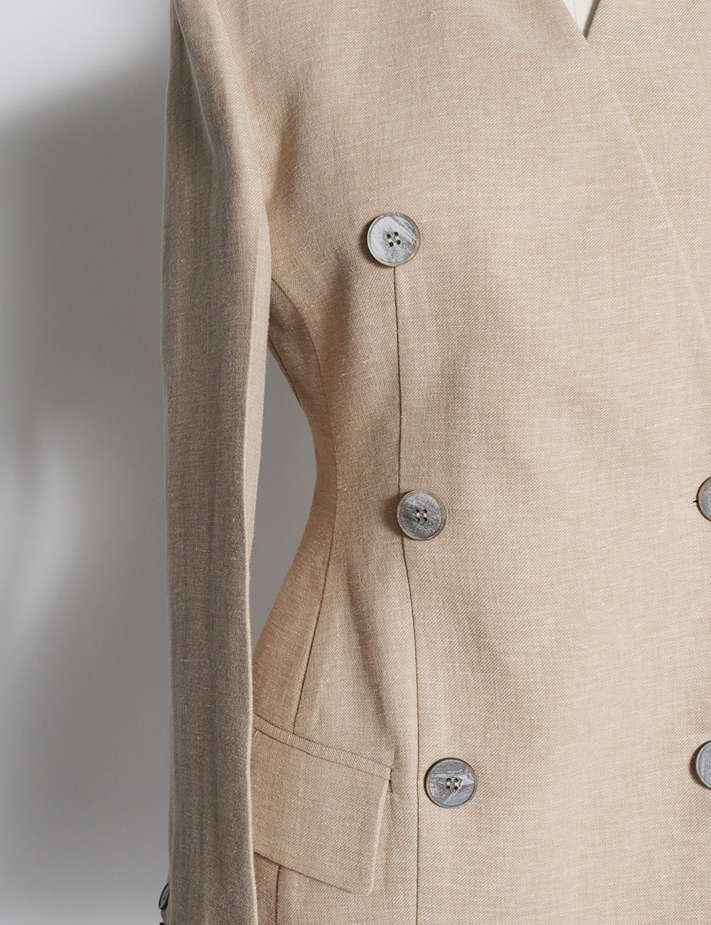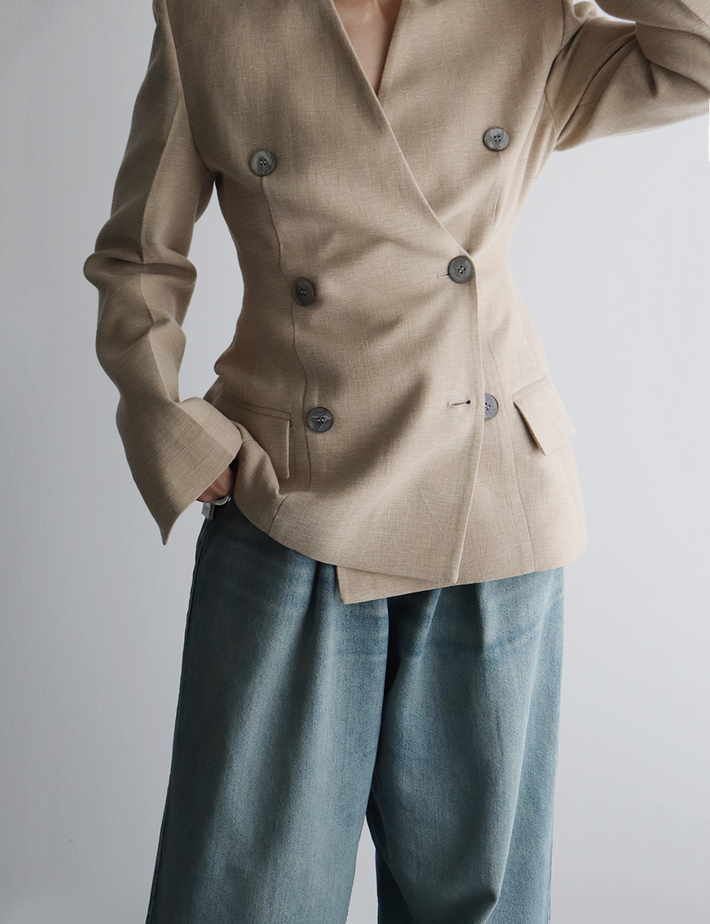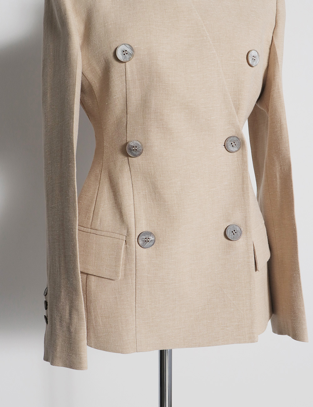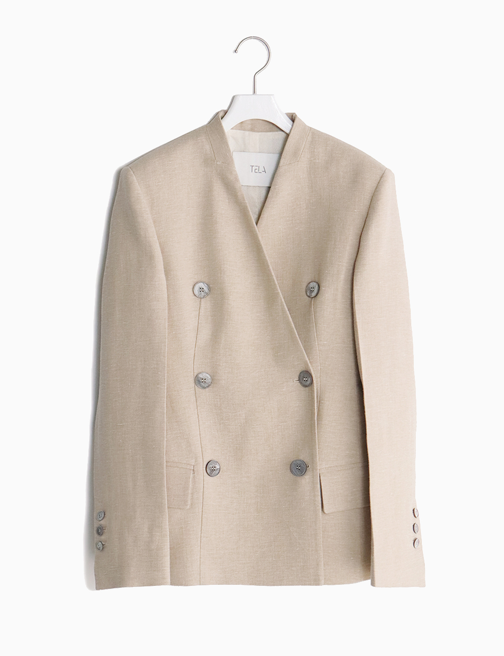 CLES Linen Cotton Collarless Double Jacket