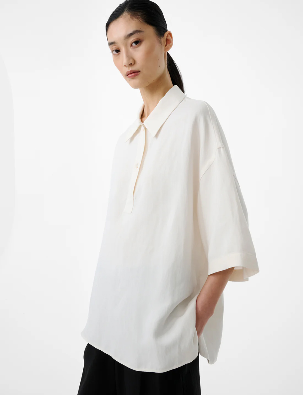 Compact Eco Poplin Reverse Sleeve Top